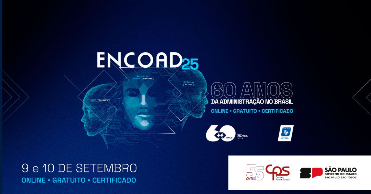 Nos dias 9 e 10 de setembro de 2025, acontece o 16º ENCOAD – Encontro do Conhecimento em Administração, promovido pelo CRA-SP. Este ano, o evento celebra os 60 anos da Administração no Brasil, com uma programação especial que conecta passado, presente e futuro da profissão.